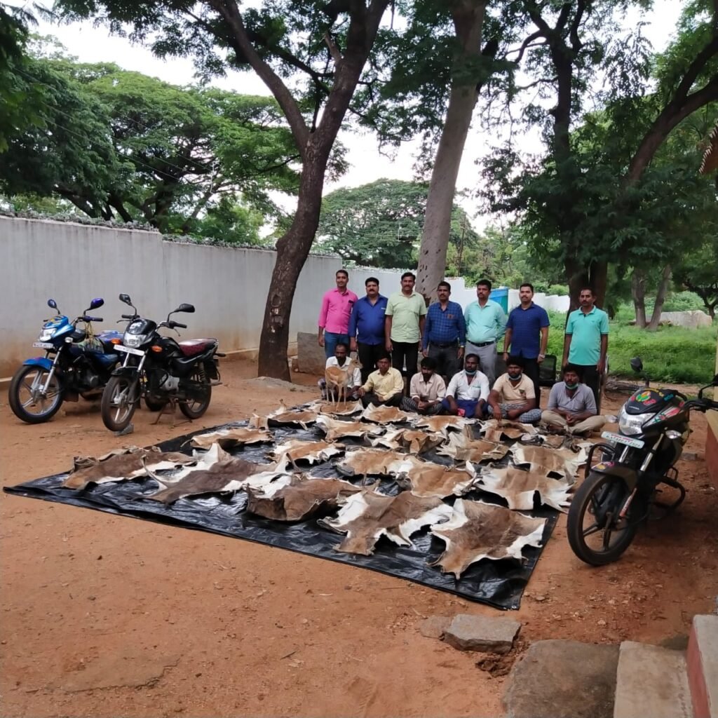 Forest officials under cover of being purchasers nabbed the accused. 20 blackbuck skins, 2 blackbuck horns, a deer skin, and 3 bikes were seized.