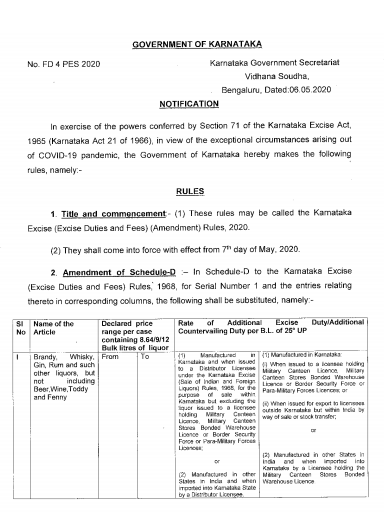 Two dayS after allowing liquor sales in Karnataka following the easing of lockdown rules, the Yediyurappa government has hiked the excise duty on liquor by 11 per cent. This is in addition to the six per cent increase that was announced in the budget.