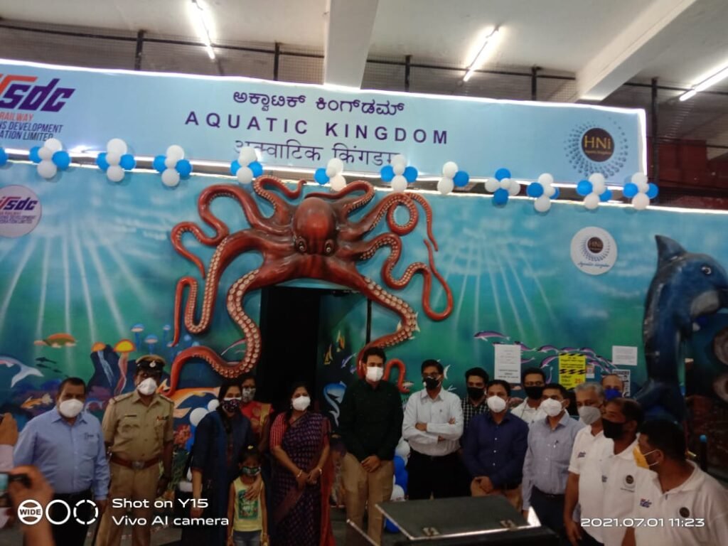India’s first ‘Aquatic Kingdom’ in a railway station was formally thrown open to the public on Thursday at KSR Bengaluru Railway Station by its first patron Mohammed Ismail and first child visitor Samriddhi Jain in the presence of SWR’s Bengaluru division DRM Ashok Kumar Verma, ADRM/A/SBC, and Railways and IRSDC officials.