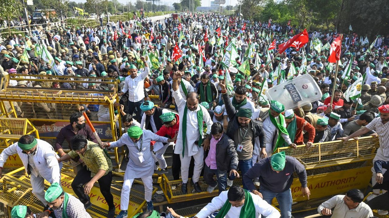 Carrying banners and flags of various farmer groups, hundreds of protesters crossed the initial barricades erected by Noida Police. While some climbed over the barricades, others pushed them.