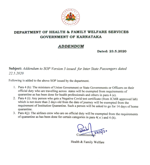 The Karnataka government came to his defence and said the Centre had issued orders exempting such people handling essential sectors from quarantine norms.