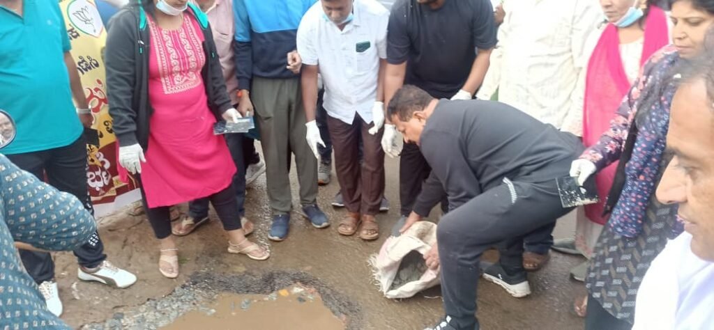 In response, Yelahanka MLA S.R. Vishwanath spearheaded a “Pothole Filling Campaign” and road blockade protest to highlight the negligence. The campaign witnessed the participation of several BJP leaders, local residents, and party workers in large numbers, demanding accountability from the state government.